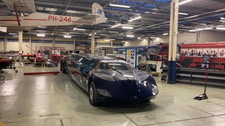 Wasn’t the Superbus already in the Transport Museum? Yes, in Lelystad. The futuristic vehicle was moved from storage on campus to the former car showroom of the Transport Museum Lelystad in June 2017. Dick Rensema, the Chair of the Museum that was open every Saturday afternoon to visitors, viewed the Superbus as the jewel of his collection. Unfortunately, circumstances, including the Covid outbreak, is forcing the Transport Museum Lelystad to close in 2021. So Rensema went looking for another home for the Superbus.