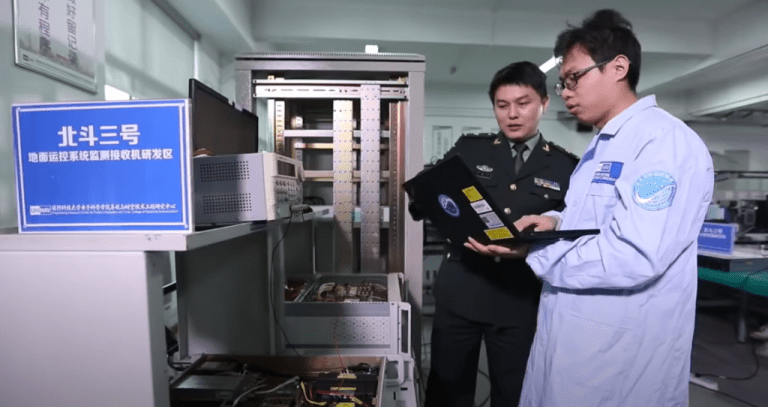 Twee NUDT’ers nemen onderzoek door in een propagandavideo. (Bron: Still van YouTube)