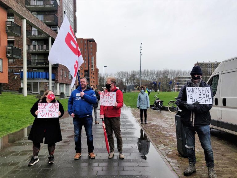 Hoewel de demonstratie zich vooral richt op de verliezers van deze wooncrisis, spreken ook de ‘winnaars’ het aanwezige publiek toe. Een van hen is Delftenaar Nina. Geboren en getogen in een gezin onder de armoedegrens, was het kopen van een eigen huis nooit een realistisch gegeven. Toch woont ze nu in een koophuis. “Ik ben rijk getrouwd”, luidt de verklaring. “Mijn man komt uit de rijke sociale klasse, studeerde af zonder schuld en zijn ouders konden een jubelton schenken toen wij een huis zochten.”