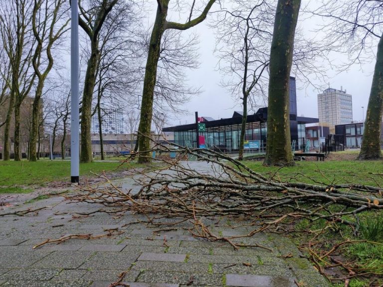 Afgewaaide takken versperren de looproute vanaf X TU Delft naar The Green Village.Na het weekend maakten de afdelingen Campus Real Estate, Parkmanagement en Campusveiligheid de balans op: een paar kapotte ruiten, een geknakt verkeersbord en wat losgeraakte takken. “Gelukkig is er alleen sprake van materiaalschade en hebben er geen ongelukken met personen plaatsgevonden”, laat een woordvoerder in een schriftelijke reactie weten.
