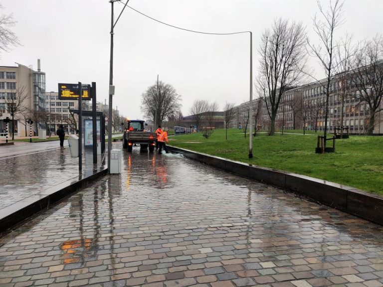 In het Mekelpark was die schade na het weekend duidelijk zichtbaar. Tegenover de faculteit Elektrotechniek, Wiskunde & Informatica veegden medewerkers de glasscherven bijeen van wat ooit een bushokje was.