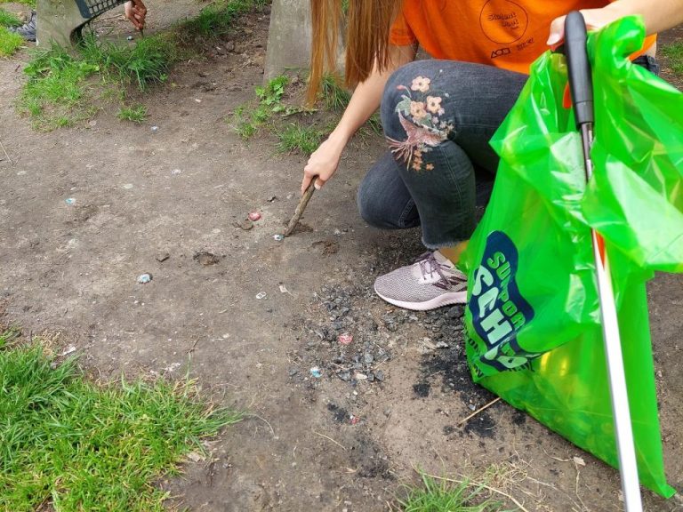 Verderop in de Delftse Hout ruimen vier leden van studieverenigingen S.V.N.B. Hooke (nanobiologie), S.V. Life (life science & technology) en VvTP (technische natuurkunde) zwerfafval op. Na nog geen uur rapen hebben de vier studenten ieder een halve zak vol. “We begonnen op een centrale plek langs het strandpad, maar laten ons nu leiden door het afval”, vertelt Lianne van S.V.N.B. Hooke.