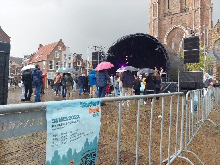 Als Oras-voorzitter Maarten de Nooijer bekend maakt dat er al bijna tweeduizend euro voor de Voedselbank is ingezameld, gaat er een gejoel op vanuit de menigte. Peter Vogelaar, voorzitter van de Voedselbank neemt het nieuws dankbaar in ontvangst. “Dankzij deze bijdrage kunnen we wat extra’s doen voor de duizend Delftenaren en hun kinderen die voor hun eten wekelijks van ons afhankelijk zijn.”
