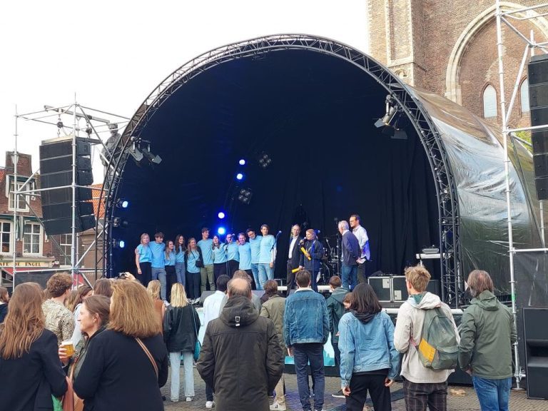 De actiedag StudentDoet! werd afgesloten met een benefietconcert op de Markt. (Foto's: Marjolein van der Veldt)