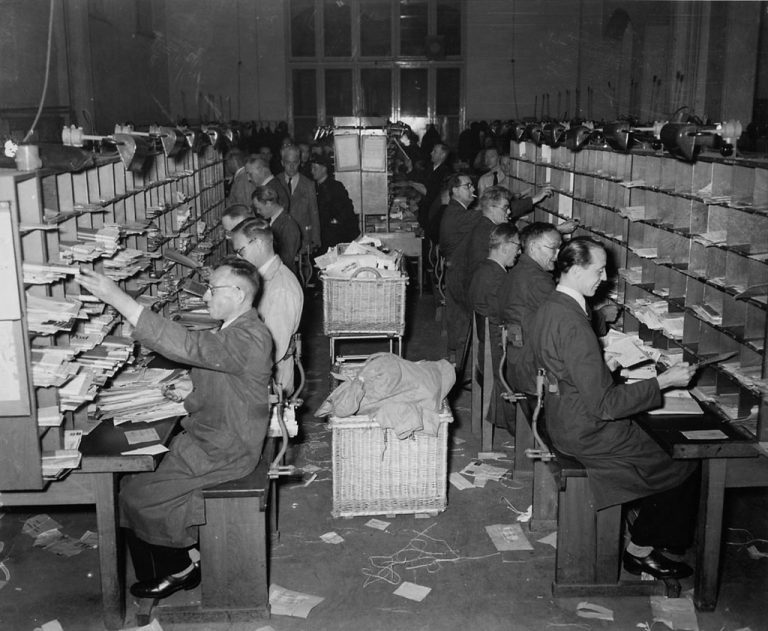 Putting letters in the right box is a skill in itself. (Photo: Ben van Meerendonk/AHF, collectie IISG)
