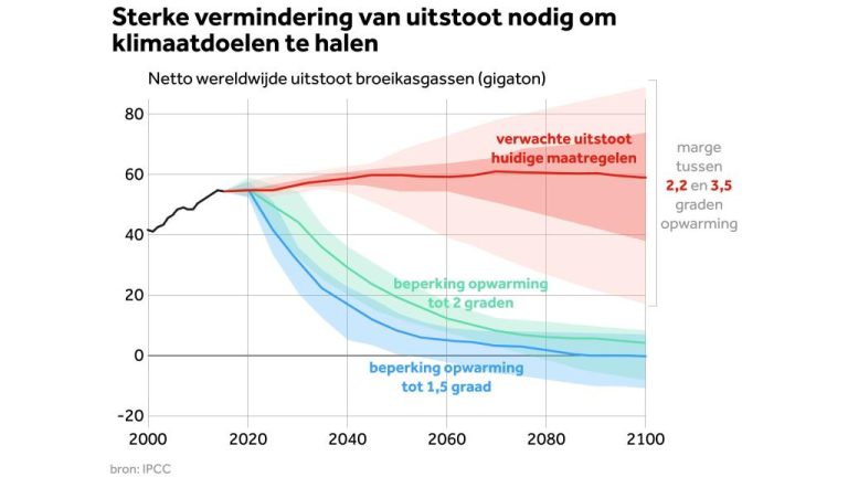 UN chief António Gutteres called the 1.5 degrees “a point of no return”, which over time gave the target an apocalyptic connotation. Despite all the pledges, with the exception of the Covid period, annual global CO2 emissions have only increased. As a result, as early as 2033, there will be so much greenhouse gas in the air that the 1.5 temperature rise will be reached. Temperature trends also point to the year 2033.