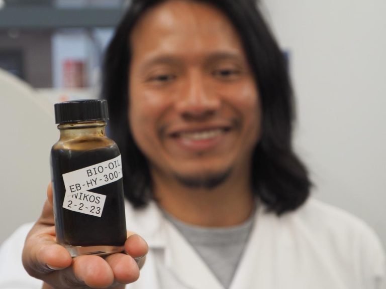 At that temperature and pressure (hydrothermal liquefaction), the acacia chips disintegrate into four products in five to 60 minutes: bio-oil, biochar (a carbon-rich material), gas and water containing dissolved organic substances and salts. In the latest experiments, the bio-oil yield from 100 grams of acacia chips was 28 grams. The researchers hope to increase this a little more.