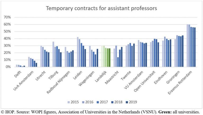 The new CAO is aimed primarily at assistant professors, over 30 percent of whom were on temporary contracts five years ago, compared to 26 percent today. The unions are keen for this downward trend to continue.