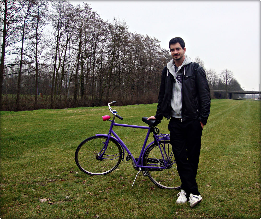 I’d like to comment that I’ve never been tempted to buy a new bike, despite the fact that I have friends with more than three bikes each who often tease me by asking me to exchange bikes: my own for one of theirs! In the end, we all end up laughing because they do know how greatly I’m attached to it! In fact, I never go somewhere without taking it with me, even if I have to travel a distance of 10 meters. When I come back home, I always take it inside my apartment because I’m afraid someone might steal it. It’s purple and pink, so it can be easily spotted by a thief’s eyes. I’ve never traveled very long destinations with it, though, as it’s an old bike with tires in really bad shape, but I usually take it with me in the train. When I was still its new owner, I used to give rides to a friend who happened to have more bike problems; in that sense, after a while it was a common secret that nothing wrong ever happens to my bike, in contrast to most of the rest. Sometimes people make fun of the fact that it has bright colors, but it’s not all that bad.”