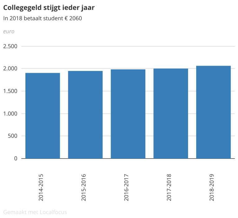 Studenten moeten in 2018 fors meer collegegeld betalen. Het tarief gaat omhoog van 2.006 naar 2.060 euro. De stijging is groter dan in vorige jaren: maar liefst 54 euro.