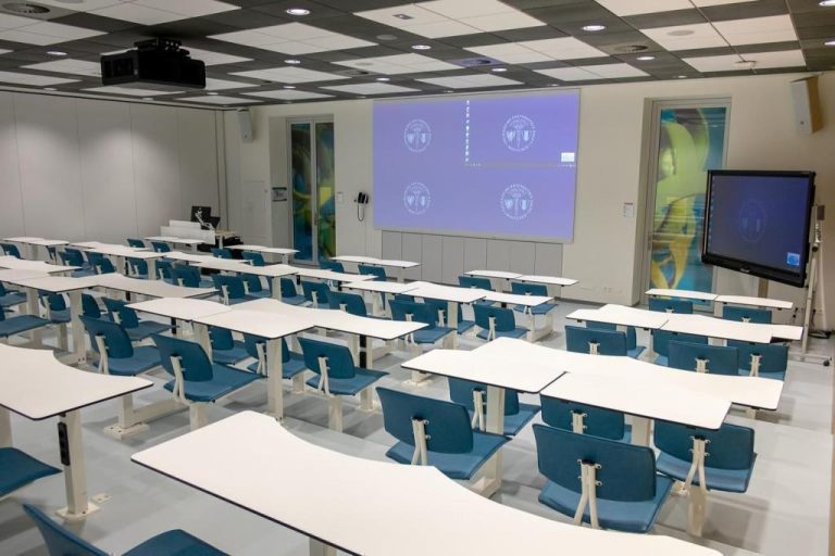 Bovenstaande foto toont een collegezaal van de Harvard Business School. Studenten zitten op comfortabele, draaibare, in hoogte verstelbare en verrijdbare bureaustoelen. Welke sadist heeft desondanks gekozen voor het Abu Ghraib-meubilair in de Beijerinckzaal, de Watermanzaal, de Franklinzaal, de Korvezeezaal en de Wim Crouwelzaal? Voor de inclusiviteit van stevig gebouwde studenten krijgt de TU Delft een dikke onvoldoende.