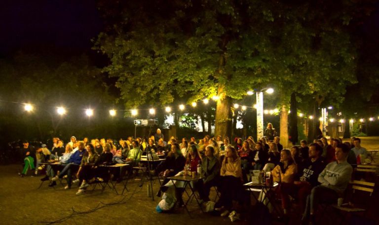 De buitenbioscoop tijdens de Let’s Talk About Yes actieweek. (Foto: Amnesty Delft)