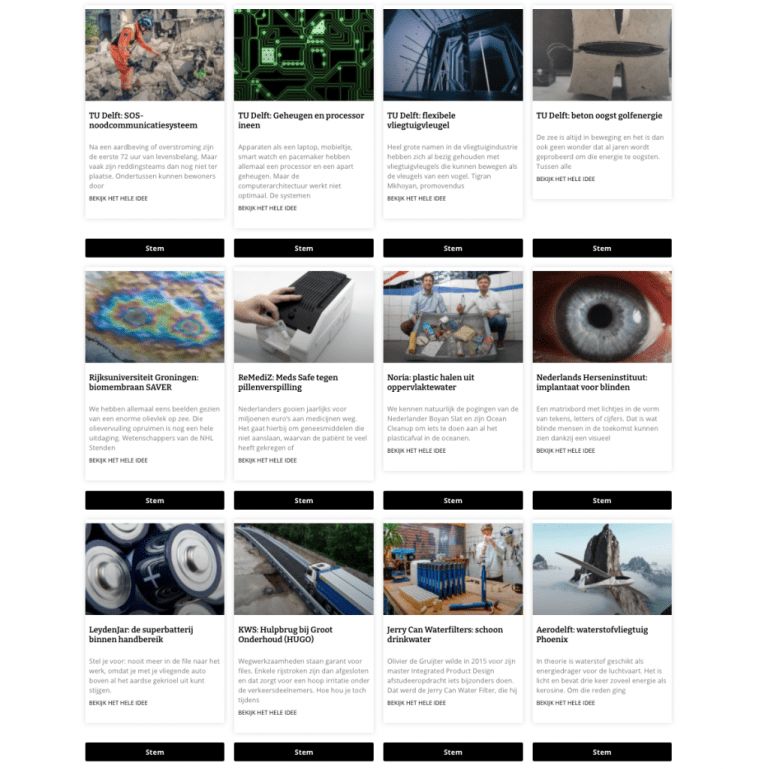 Iedereen kan nu een stem uitbrengen op de lijst van twintig beste tech-ideeën van het wetenschapsblad KIJK Magazine. “Er zitten elk jaar wel twee of drie Delftse inzendingen bij”, zegt redacteur Laurien Onderwater. “Maar dit jaar zijn het er wel heel veel.” Ruim een derde van de lijst bestaat uit Delftse onderwerpen: zes van de TU en één start-up.