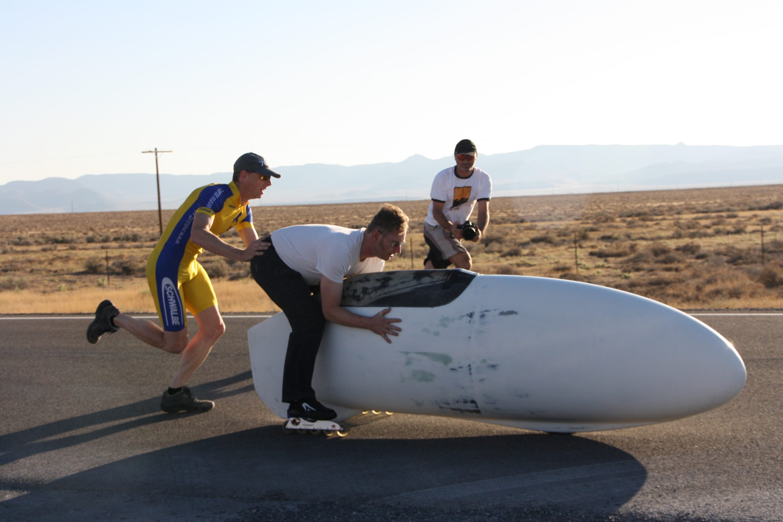 Thomas Ollinger is een oude rot in het vak. Sinds 1993 racet hij in zelfgemaakte ligfietsen. Hij weet een verrassend simpele manier om het record van Witthingham te verbreken. “Stop Bowier gewoon in de fiets van team Cygnus.” Dan krijg je volgens hem de ultieme mens-machine combinatie.