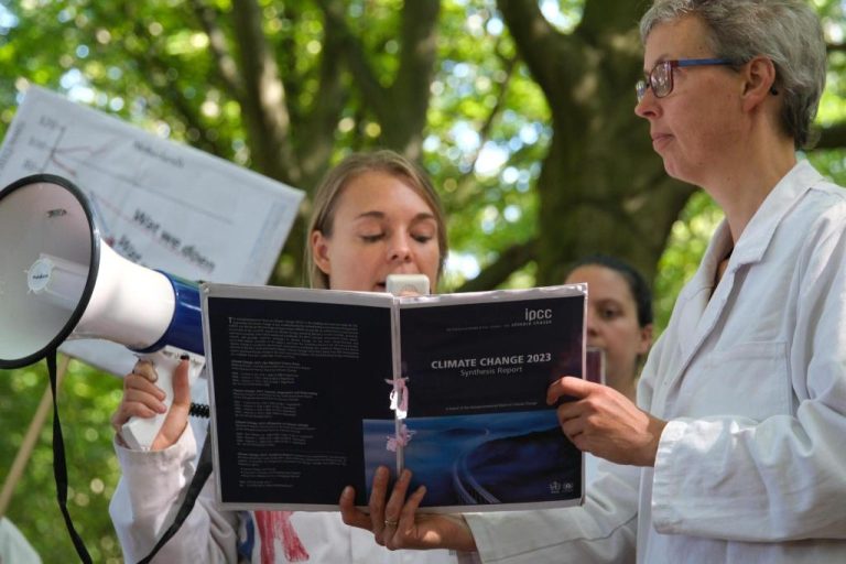For more than 10 days, climate activists from Extinction Rebellion have been blocking the A12 motorway in The Hague in protest against the tax breaks and subsidies for large fossil energy consumers and fossil energy companies. Among them were scientists wearing togas or lab coats. (HOP, PvT)
