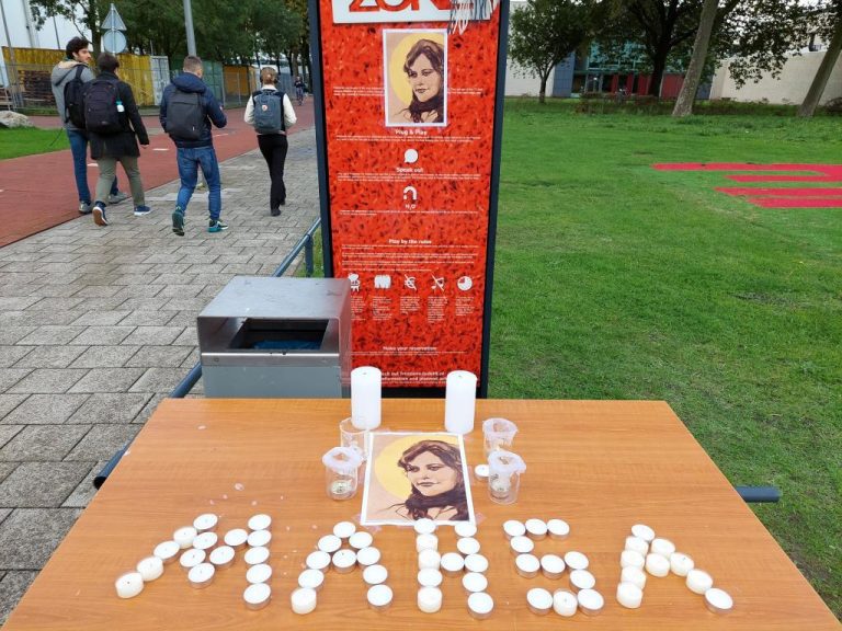Nevertheless, a remembrance was still held on campus on Wednesday 28 September. Students and staff lit candles to honour Mahsa Amini at Freezone D, next to the Faculty of Electrical Engineering, Mathematics and Computer Science.