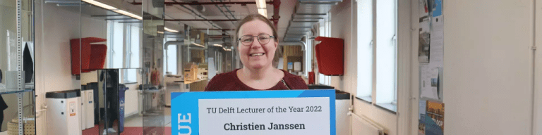 Christien Janssen has become a celebrity in the Faculty of Architecture and the Built Environment. At the main entrance, a screen shows a photo of the smiling Lecturer of the Year every couple of minutes. It makes Janssen happy. “Although I think they must have had enough of me by now.”