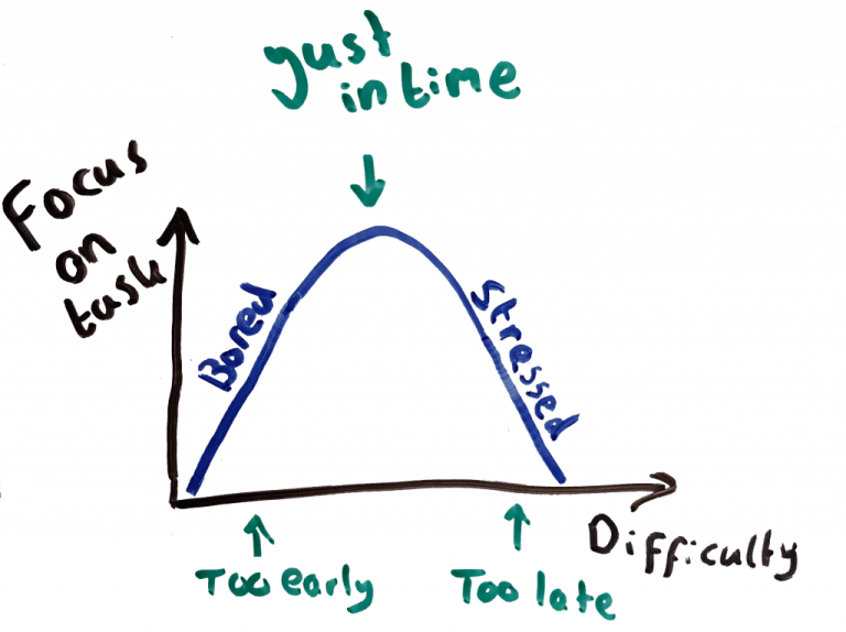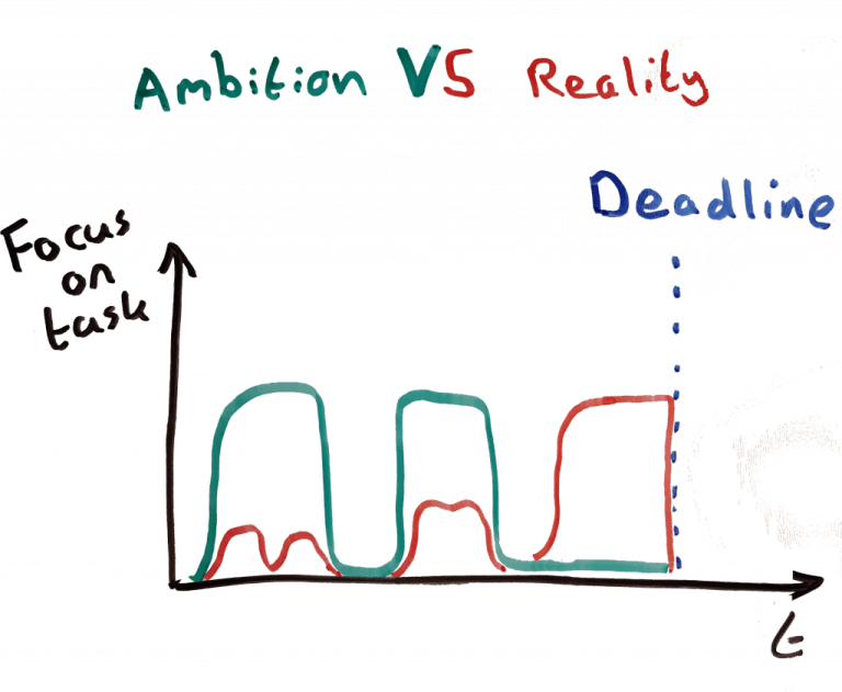 Everyone has experienced it – you started too late and are stressed. You then experience the effects of an overdose of cortisol, or the stress hormone. A lack of cortisol leads to a loss of focus (in Dutch). This means that easy jobs lead to low productivity and putting things off. This makes beginning early difficult. This explains why students work inefficiently – or not at all – until the time that the deadline is just doable. This exemplifies Parkinson’s Law and why students work at the very last minute.
