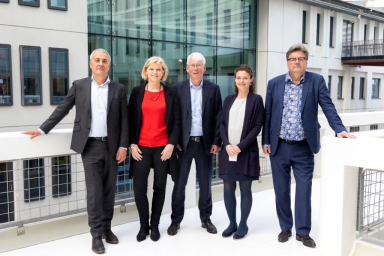 Het bestuur van de NAE bestaat uit (vlnr) Inald Lagendijk, Sjoukje Heimovaara, Henk van Houten, Eline van Beest en Ton van der Steen. (Foto: Barbra Verbij)
