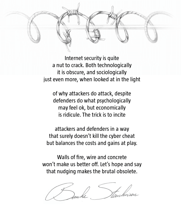 Poetic impression by Bauke Steenhuisen of the dissertation ‘Cybersecurity via Intermediaries, Analyzing Security Measurements to Understand Intermediary Incentives and Inform Public Policy’ by Hadi Asghari, defended on the 29th of February.