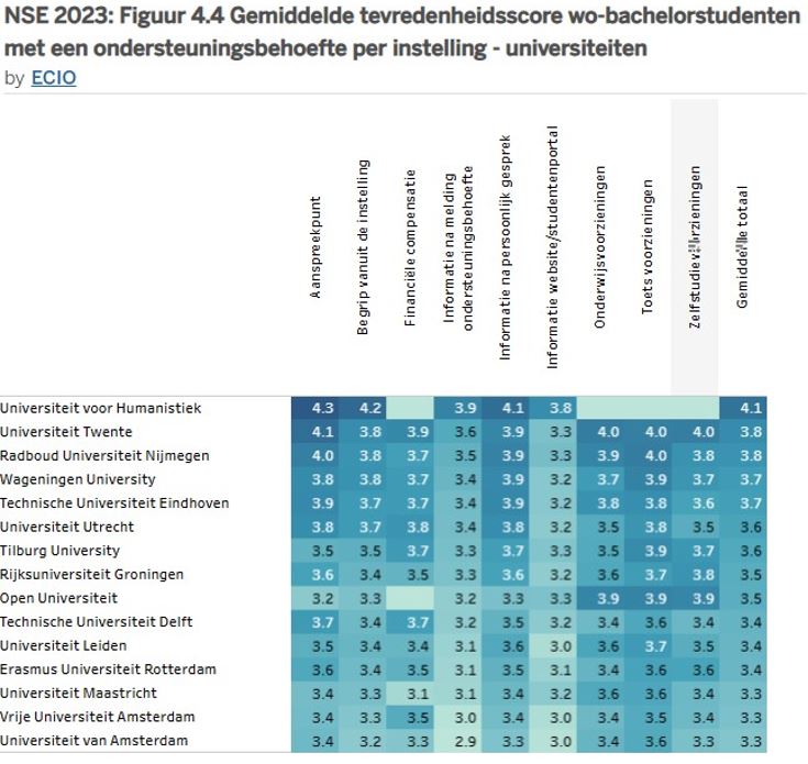 Veel studenten met een ondersteuningsbehoefte door bijvoorbeeld ziekte, beperking, mantelzorg of topsport weten nog altijd niet dat ze daar recht op hebben. Sommige instellingen hebben hun voorzieningen en voorlichting beter op orde dan andere. De TU Delft eindigt in de middenmoot van een onderzoek van Expertisecentrum Inclusief Onderwijs (ECOI).