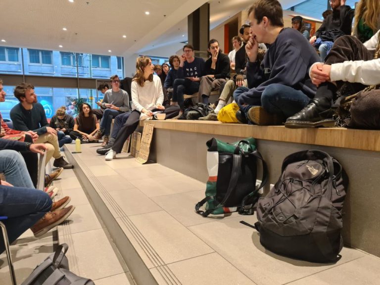 A climate protest aimed at TU Delft and the University of Leiden last Monday went very differently. In the shared Wijnhavengebouw in The Hague’s city centre, End Fossil LU TUD held a gathering with speakers, attended by about thirty people.