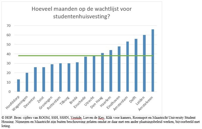 Studenten die te lang moeten wachten zijn aangewezen op de duurdere particuliere sector. Alles bij elkaar vinden studenten gemiddeld na vijf maanden een woning, staat in het jaarlijkse rapport Landelijke Monitor Studentenhuisvesting.