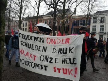 Een paar honderd studenten protesteerden donderdagmiddag in Den Haag tegen het leenstelsel. Er werd een poging gedaan om een ministeriegebouw te bezetten, maar dat plan mislukte.