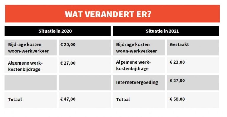 Sinds de uitbraak van het coronavirus werken veel medewerkers vanuit huis. Desondanks kregen zij hun vaste reis- en onkostenvergoedingen doorbetaald. Per 1 januari 2021 staat de Belastingdienst het niet langer toe om een netto bijdrage reiskosten woon-werkverkeer aan medewerkers uit te keren.