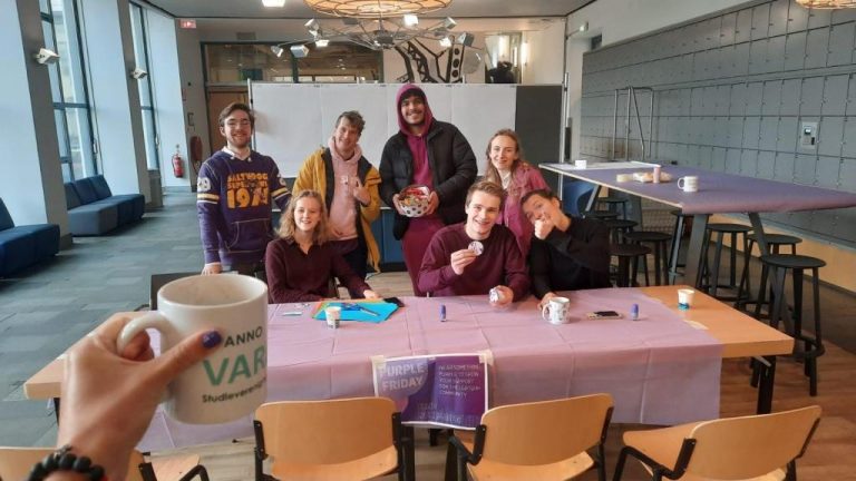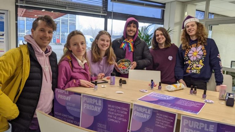 De TU Delft doet sinds 2019 mee aan Paarse Vrijdag. Daarop tonen mensen via paarse kleding hun solidariteit met jongeren die lesbisch, homo, biseksueel, transgender, non-binair, intersekse of queer zijn. Karbache vertelt dat de dag ook leeft bij veel studieverenigingen op de TU. “Bij EWI en 3mE zijn vandaag bijvoorbeeld paarse nagellakstations.”