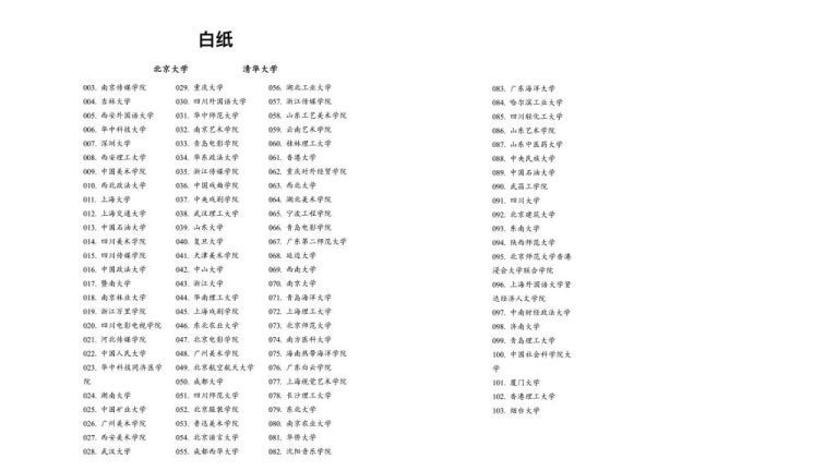 Niet veel later nadat Ronghua haar telefoon weer had neergelegd, gingen beelden van baizhi gaige (‘revolutie van het witte papier’) de wereld over. Hoewel buitenlandse journalisten in groten getale bij protesten in stadscentra aanwezig waren, waren ze niet bij demonstraties op Chinese campussen aanwezig. Toch is het via sociale media mogelijk om een beeld te krijgen van wat er zich daar de afgelopen anderhalve week afspeelde. Volgens journalisten van University World News, die berichten, video’s en foto’s op sociale media analyseerden, is op zeker 100 universiteiten gedemonstreerd. Dat varieerde van een enkele student die een blanco vel papier omhooghield, tot bijeenkomsten met tientallen studenten. Op Weibo, de Chinese variant van Twitter, gingen lijsten rond met de namen van universiteiten waar volgens Chinese internetgebruikers protesten waren (zie onderstaande afbeelding).