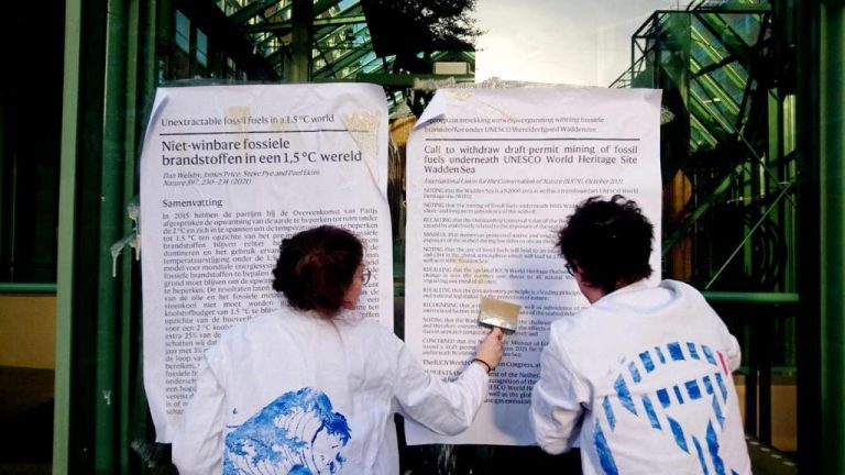 Negen actievoerders van Scientist Rebellion hebben afgelopen donderdag wetenschappelijke artikelen en een pamflet op de ramen van het ministerie van Economische Zaken en Klimaat geplakt. Hiermee protesteerden ze tegen plannen voor gasboringen in de Waddenzee.