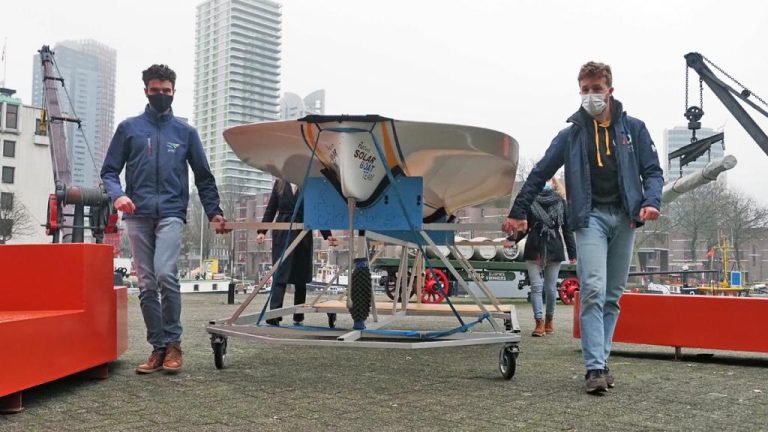 Een museum moet niet alleen over het verleden gaan, maar ook over de toekomst, vindt het TU Delft Solar Boat Team. De bijzetting van hun zonneboot uit 2016 in het Maritiem Museum Rotterdam vraagt aandacht voor de verduurzaming van de scheepvaart – een opgave voor de komende decennia. Al eerder vond een zonneboot zijn weg naar een museum, namelijk het Scheepvaartmuseum in Amsterdam. Met zijn dek vol hoogwaardige zonnepanelen en de twee draagvleugels ziet de zonneboot in het Maritiem Museum Rotterdam er futuristisch uit. En toch is het ook in overdrachtelijke zin al een museumstuk. Vanaf komend jaar vaart het Delftse team namelijk zonder zonnepanelen, maar op waterstof. Ze bereiden zich daarbij voor op de Solar & Energy Boat Challenge in Monaco.