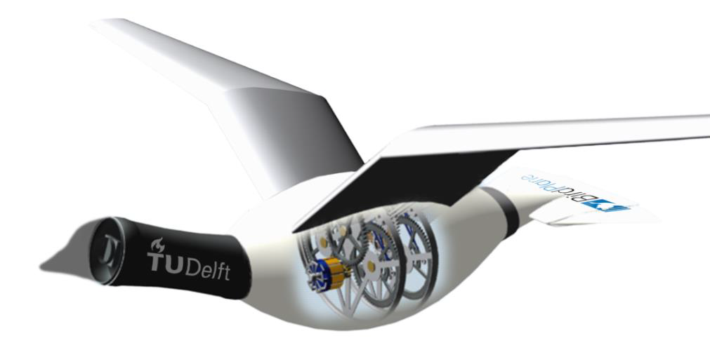 Ontwerp een drone, geïnspireerd op ganzen. Dat was heel kort de opdracht van tien studenten luchtvaart- en ruimtevaarttechniek voor hun bachelor-eindproject. De drone moest onderzoek kunnen doen naar de aerodynamica van zijn levende broeders. Dus moest hij met ze kunnen meevliegen, zonder op te vallen. Eén van de studenten, Julia van der Burgt, moest denken aan Leonardo da Vinci. “Hij probeerde ook te vliegen als een vogel. Nu vliegen we al honderd jaar met statische vleugels en daaraan is niet meer zo veel te optimaliseren. Met nieuwe technieken en materialen lukt het nu misschien wel om met vleugels te klapperen.” De studenten lieten zich inspireren door de Brandgans, die in Van der Burgts woorden ‘duizenden kilometers kan vliegen op een paar grassprietjes’. Om de complexe vleugelbeweging na te maken, moesten de studenten met veel rekening houden: mechanica, elektronica, aerodynamica, energiebronnen, efficiëntie, sensoren. Hun ontwerp heet Birdplane. De studenten kregen er een 8,5 voor. De ganzendrone, met een spanwijdte van anderhalve meter, kan autonoom meevliegen met echte ganzen. Op papier dan. Een enthousiaste investeerder heeft het project vijfduizend euro gegeven om een prototype te bouwen.