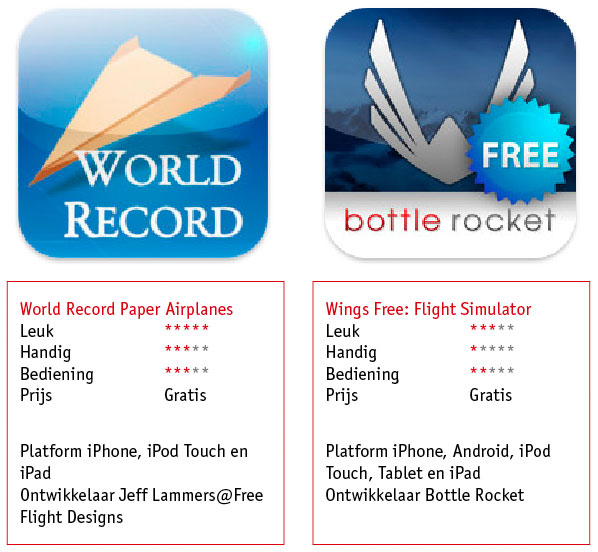 Een yogamaster in Tibet kende de ingewikkeldste houdingen, maar moest van de meisjes uitgelegd krijgen hoe hij een belangrijke basishouding in de yoga aannam. Wat maar wil zeggen dat je nog zo geleerd kunt worden in de luchtvaart- en ruimtevaarttechniek; je mist belangrijke kennis als je geen papieren vliegtuigje kunt vouwen. Nou, is dat geen mooie reden om de app World Record Paper Airplanes te installeren? De titel zegt genoeg: je ziet uiteenlopende papieren vliegtuigjes en leert hoe je ze moet vouwen. Hersenspinsel van een fanatieke Amerikaan die sinds zijn zesde vermeldingen in het Guinness Book of Records nastreeft. De hoeveelheid vliegtuigjes is wel wat summier, en er ontbreekt een filmpje van hoe ze vliegen. Maar daarmee maak je niet minder indruk als je kleine neefje komt logeren.