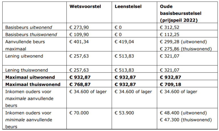 De basisbeurs gaat iets omhoog en studenten komen eerder in aanmerking voor een aanvullende beurs. Daartegenover staat een verdubbeling van het collegegeld voor eerstejaars.