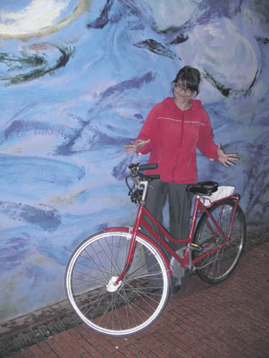 The only problem is that she doesn’t know exactly where her bike is. As she says: “It’s not my fault! I just lent my bike to a friend for a couple of days, without thinking that something could go wrong.” But as that ‘friend’ later confessed rather jocosely: “Efi and I have known each other for a while, so she should’ve know that I’m a bit over-my-head when it comes to meaningless procedures like locking a bike.” With Efi’s borrowed bike stolen, the friend-in-question, in an ultimate act of redemption, ‘spontaneously’ offered to give Efi his bike in return for her loss. As Efi says: “He made me an offer I couldn’t refuse.” Days (or perhaps seconds later), Efi deeply regretted accepting this ‘generous’ offer. Her ‘new’ bike turned out to be “just some spare metal parts abstractly welded together with eyes closed”, she says laughing, some kind of vintage artifact carrying no brand or further identity, its past well-concealed under a thick rough layer of red paint. “The worrying thing is that it’s not safe at all, as it only has one semi-functioning brake”, Efi says, adding that she doesn’t much care that it also has no light, a jiggly stirring wheel and a chain that’s ‘just rust’, but having no brakes is making her re-think ‘the concept of walking’. As for her bike’s price value, she estimates something between ‘zero and nothing’. With friends like these, who needs enemies?