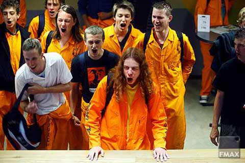 Voor de deur van de Delftse Werkgroep Homoseksualiteit biedt de jongerenafdeling Outsite de mogelijkheid om zich te laten knippen, schminken, bodypainten of masseren. “Hé, kom mee”, zegt een mentor van een groepje aankomende InHolland-studenten, dat al aardig aan het bieren is geweest, tegen zijn collega-mentor. “Ik moet naar de wc, maar durf niet alleen naar binnen.”