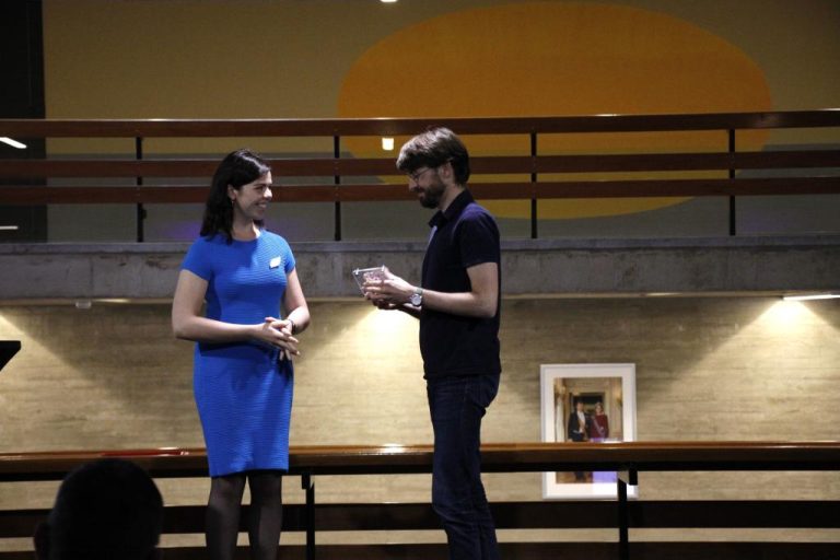 Bob van Vliet accepts the award for ‘Most Sustainable Teacher’. (Photo: GreenTU)