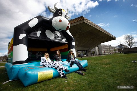 l) afgelopen maandag in een koetent. Dit om aandacht te vragen voor hun feest van 25 april met als thema ‘Boer zoekt Habibi: Van nijlpaard tot kamelenteen, waar ga je met je harem heen?’ Voeg daarbij de biertjes voor een euro en een optreden van Barry Badpak op Quintus in Leiden. Maar ja, eerst die tentamens.