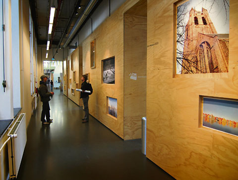 Hoofdader door het pand is de Bouwkundestraat met centrale voorzieningen als een reproruimte en een boekhandel. De straat leidt van een espressobar met hergebruikte ramen uit de gesloopte Haagse woontoren ‘Zwarte Madonna’ naar de Berlagezaal.