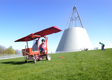 Het stuur draait direct bij de start al los en niet veel later verliest het toestelletje van studievereniging VSV Leonardo Da Vinci een deel van zijn staart. Al hobbelend van het bibliotheekdak vraagt de studievereniging aandacht voor haar ‘Ter Land, ter Zee en in de Lucht’.