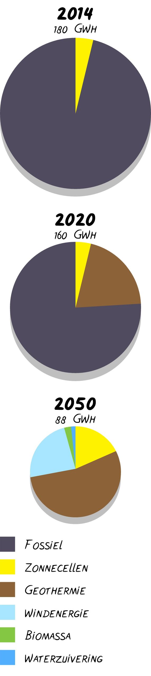 Studenten Jitske Swagemakers, Jaafar Quraishi, Casper van Nie en Bram Stikvoort maakten de balans op tussen gebruik en lokale opwekking van energie. Ze gingen uit van een gestage vermindering van het gebruik (van 2 procent per jaar) en een toenemende opwekking uit verschillende bronnen. Voor de kringlopen van water (regenval, verbruik, zuivering, hergebruik) en materialen (hergebruik van sloopbeton bijvoorbeeld) zijn ook analyses gemaakt, maar daarbij waren de kringlopen niet sluitend te krijgen.