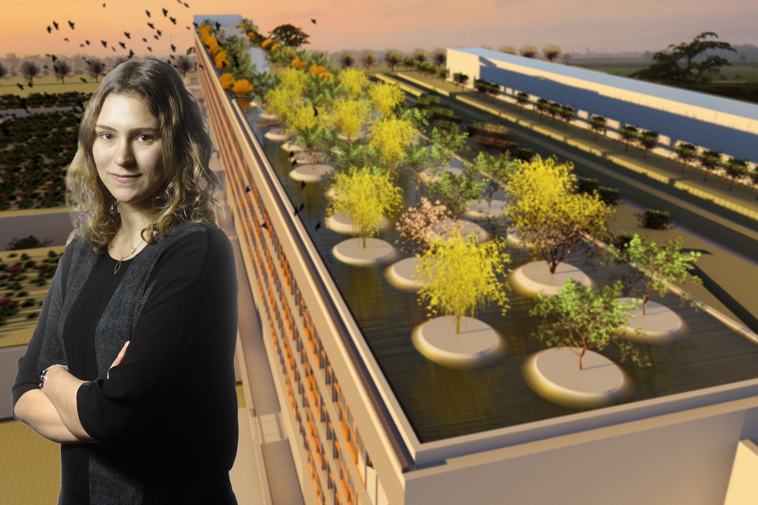 We hebben drijvende bomen bedacht als manier om een ruimte meerdere functies te geven: wateropslag, groen en energieopwekking als de boom beweegt in de wind. Dat vond ik een gaaf idee. Dichterbij was het idee om met ledverlichting op ooghoogte licht te brengen in het gehokte gebouw dat Civiel nu nog is. Met ons lichtplan dringt het licht tot in de kern van het gebouw door.”