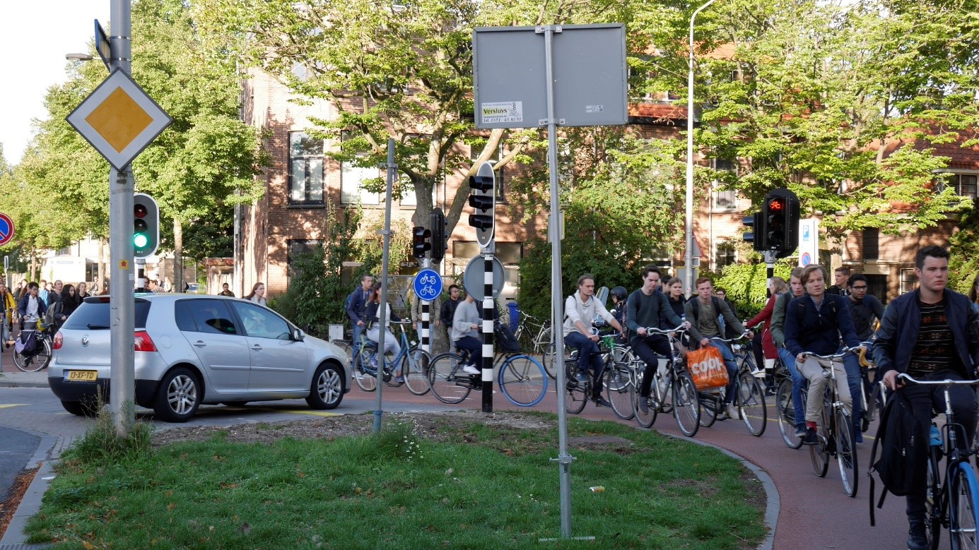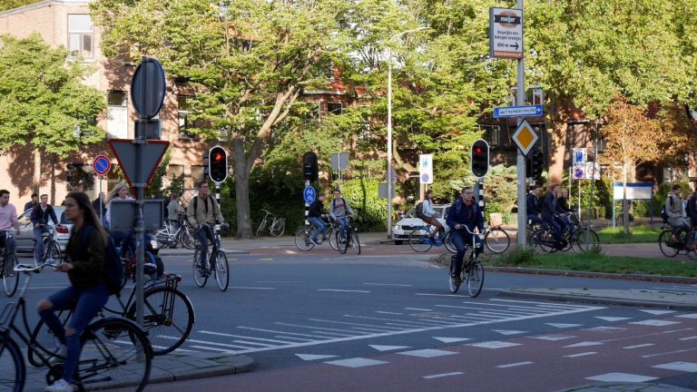 Soms is het op het randje. Een oneindige stroom fietsers baant zich in een grote sliert een weg naar de overkant van het kruispunt. Als het stoplicht op oranje springt, lijkt niemand daarvan onder de indruk. Iedereen fietst onverstoorbaar door. Het rode licht lijkt voor degenen die net het verkeerslicht hebben bereikt zelfs een teken om nog wat extra vaart te maken. Zo weten ze zich toch nog bij de colonne aan te sluiten.
