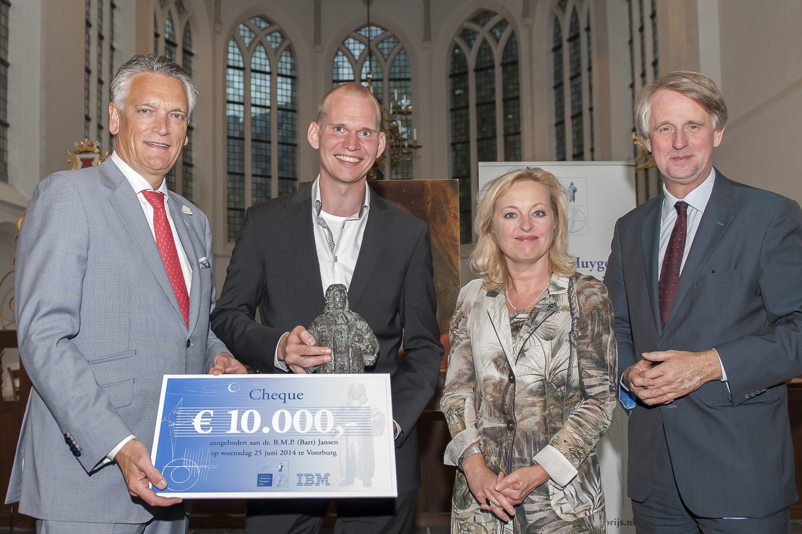 De Christiaan Huygens Wetenschapsprijs ter waarde van 10 duizend euro wordt gesteund door European Space Agency/ESTEC, Shell, IBM, De Nederlandsche Bank en Aegon.
