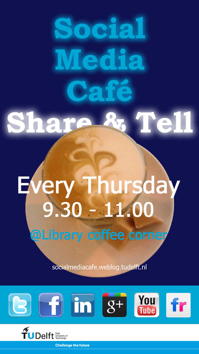 For more information, you can read their blog (Dutch only) at http://socialmediacafe.weblog.tudelft.nl/ or contact Rob Speekenbrink at r.j.h.speekenbrink@tudelft.nl.