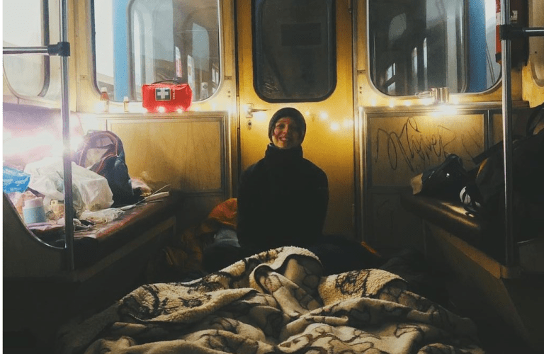 Anastasia now lives in the Kyiv metro. She documents what the situation in the city is currently like. (Photo: @sundayriver)