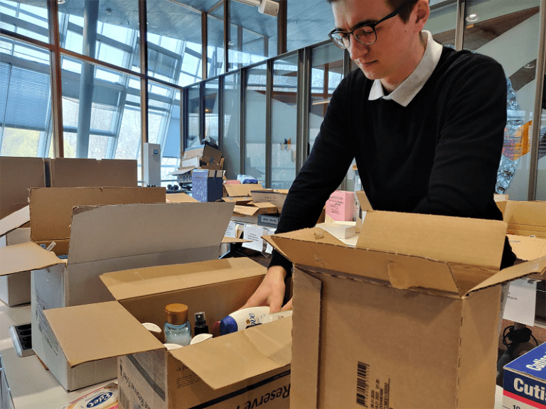 Starting out with a single drop-off point at the TU Delft Library, the initiative quickly spread across the Netherlands and Belgium. When donations piled up in Leiden, Maastricht and Utrecht, the need for a more centralised operation became apparent. Drozdowski: “That’s when the Ukraine Emergency Appeal the Netherlands allowed us to use their storage facility in Rijswijk. There we sort and label all the boxes that we collect in all our drop-off points.”