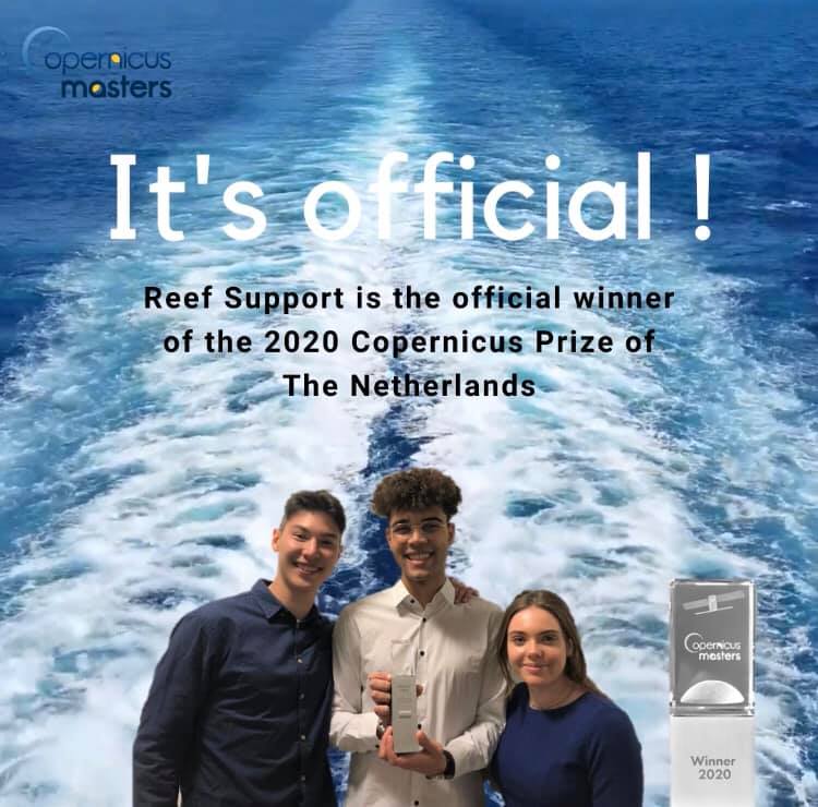 The Delft-based start-up Reef Support has won the top European prize in a competition for innovation in earth observation. They received the Copernicus Masters award from the European Space Agency (ESA) for their plan to use satellite images to protect coral reefs. Founders Marcel Kempers and Yohan Runhaar came up with the idea during a hackathon in July and were awarded the European Copernicus award in September.